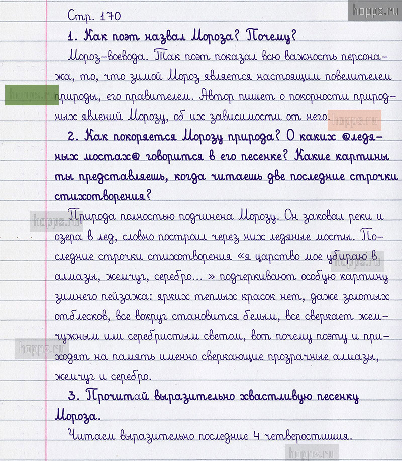 Подробные ответы к вопросам и заданиям на 170 странице 1 части учебника по литературному чтению авторов Л.Ф. Климанова, В.Г. Горецкий, М.В. Голованова для учащихся 3 класса.