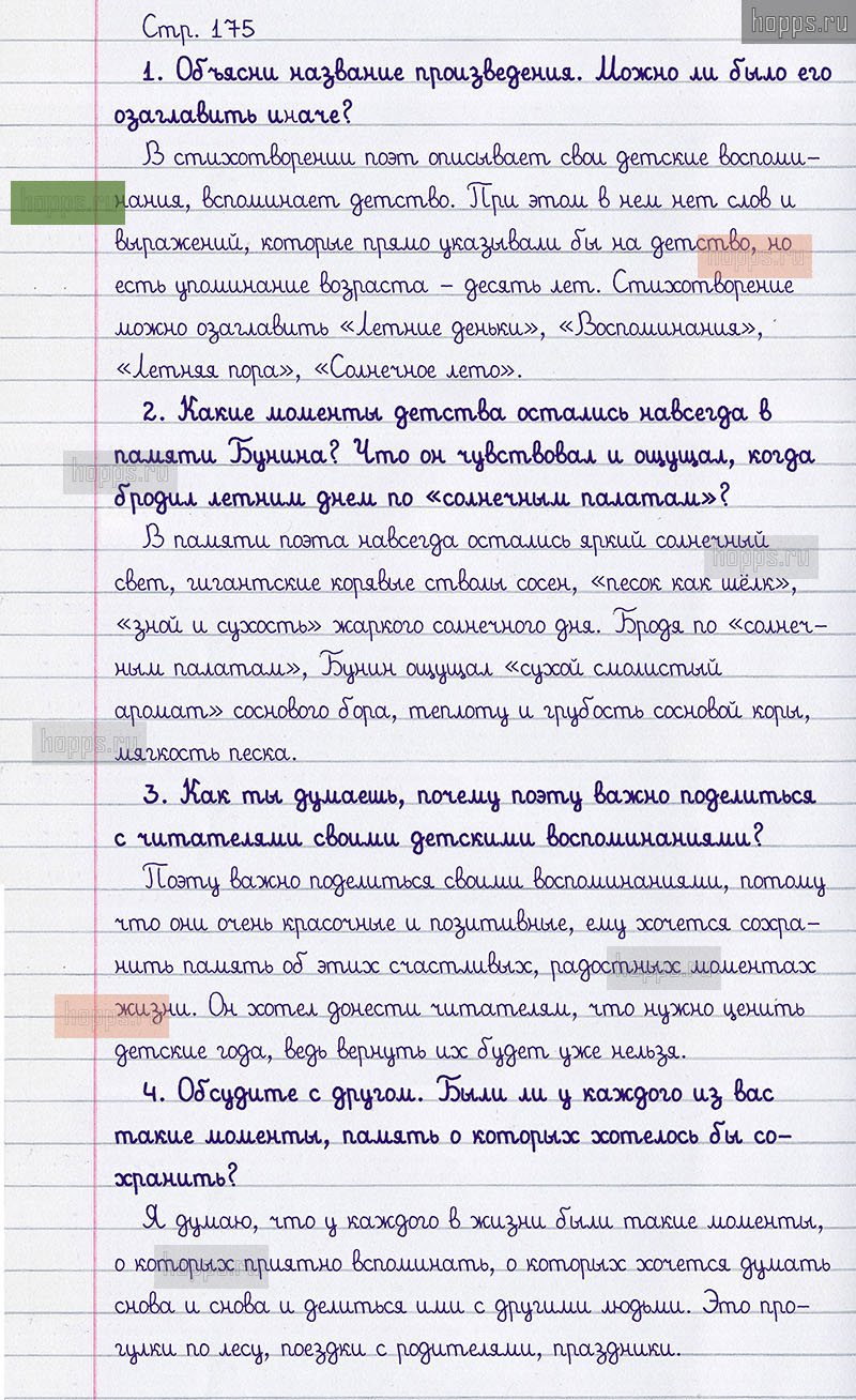 Подробные ответы к вопросам и заданиям на 175 странице 1 части учебника по литературному чтению авторов Л.Ф. Климанова, В.Г. Горецкий, М.В. Голованова для учащихся 3 класса.