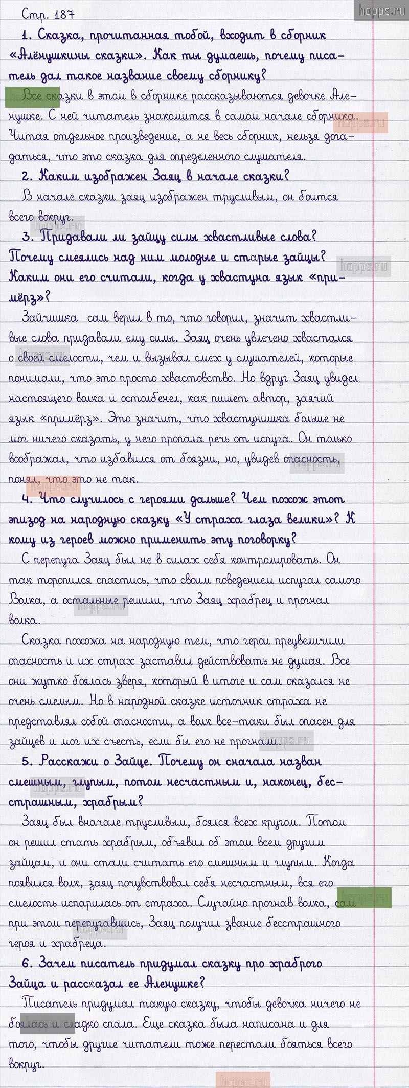 Подробные ответы к вопросам и заданиям на 187 странице 1 части учебника по литературному чтению авторов Л.Ф. Климанова, В.Г. Горецкий, М.В. Голованова для учащихся 3 класса.