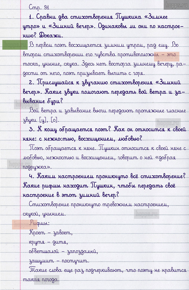Подробные ответы к вопросам и заданиям на 91 странице 1 части учебника по литературному чтению авторов Л.Ф. Климанова, В.Г. Горецкий, М.В. Голованова для учащихся 3 класса.