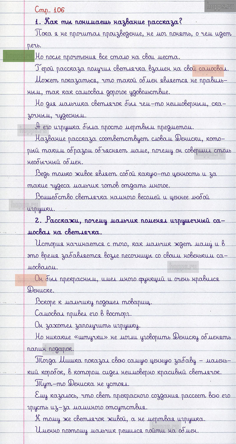 Подробные ответы к вопросам и заданиям на 106 странице 2 части учебника по литературному чтению авторов Л.Ф. Климанова, В.Г. Горецкий, М.В. Голованова для учащихся 3 класса.