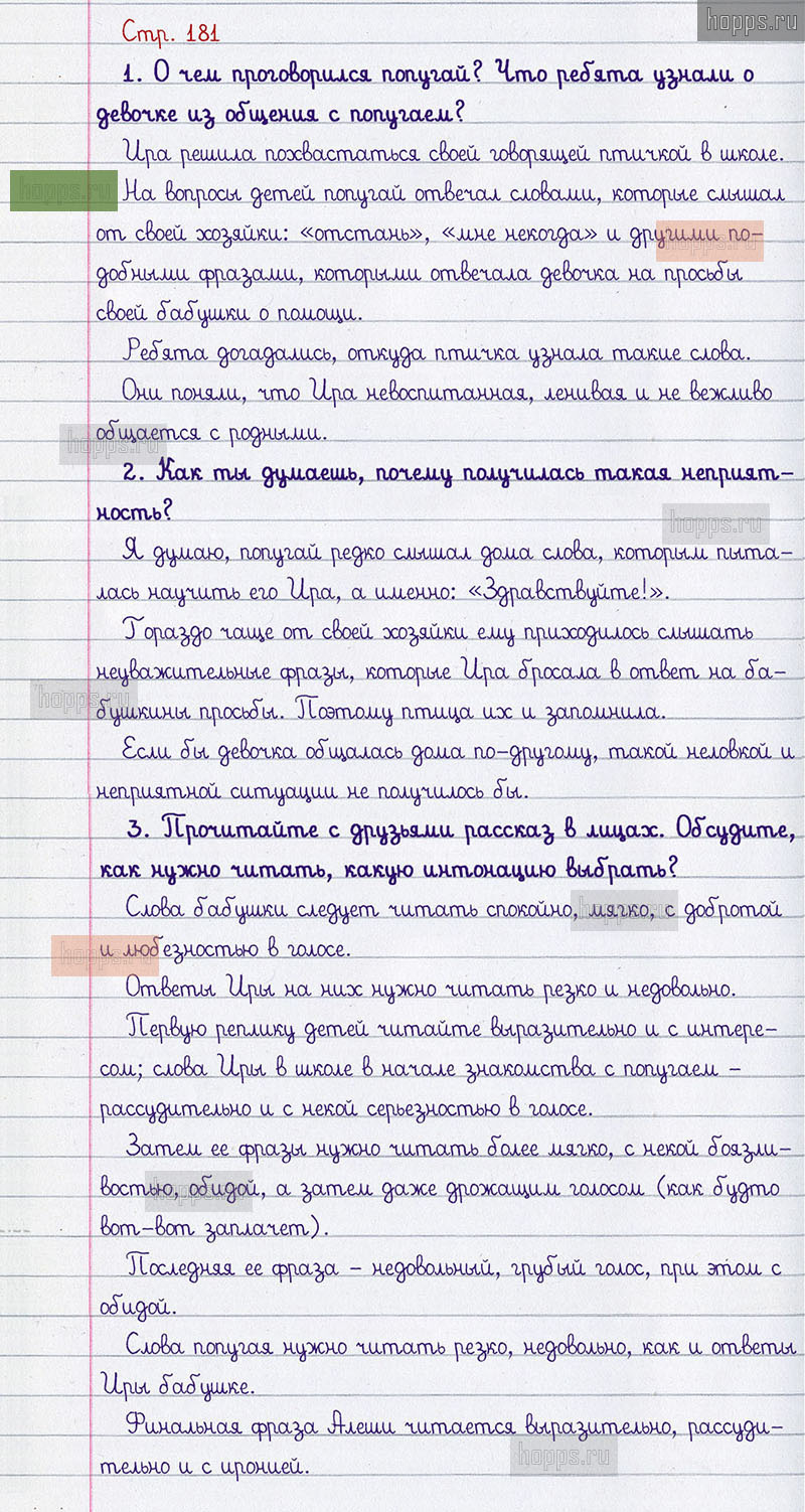 Подробные ответы к вопросам и заданиям на 181 странице 2 части учебника по литературному чтению авторов Л.Ф. Климанова, В.Г. Горецкий, М.В. Голованова для учащихся 3 класса.