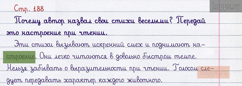 Подробные ответы к вопросам и заданиям на 188 странице 2 части учебника по литературному чтению авторов Л.Ф. Климанова, В.Г. Горецкий, М.В. Голованова для учащихся 3 класса.
