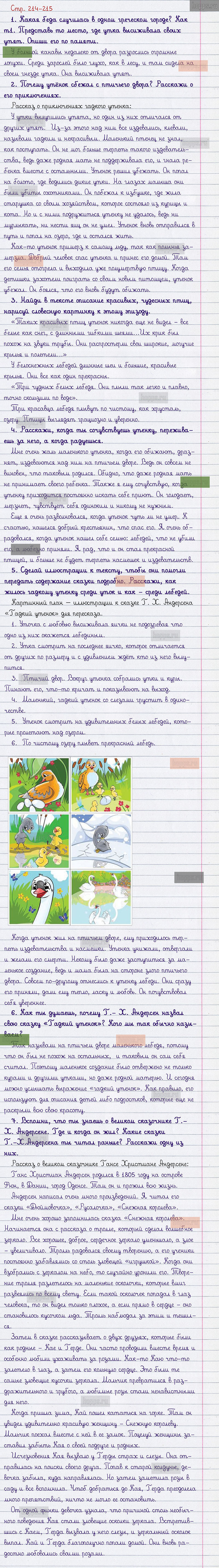 Подробные ответы к вопросам и заданиям на 214-215 странице 2 части учебника по литературному чтению авторов Л.Ф. Климанова, В.Г. Горецкий, М.В. Голованова для учащихся 3 класса.
