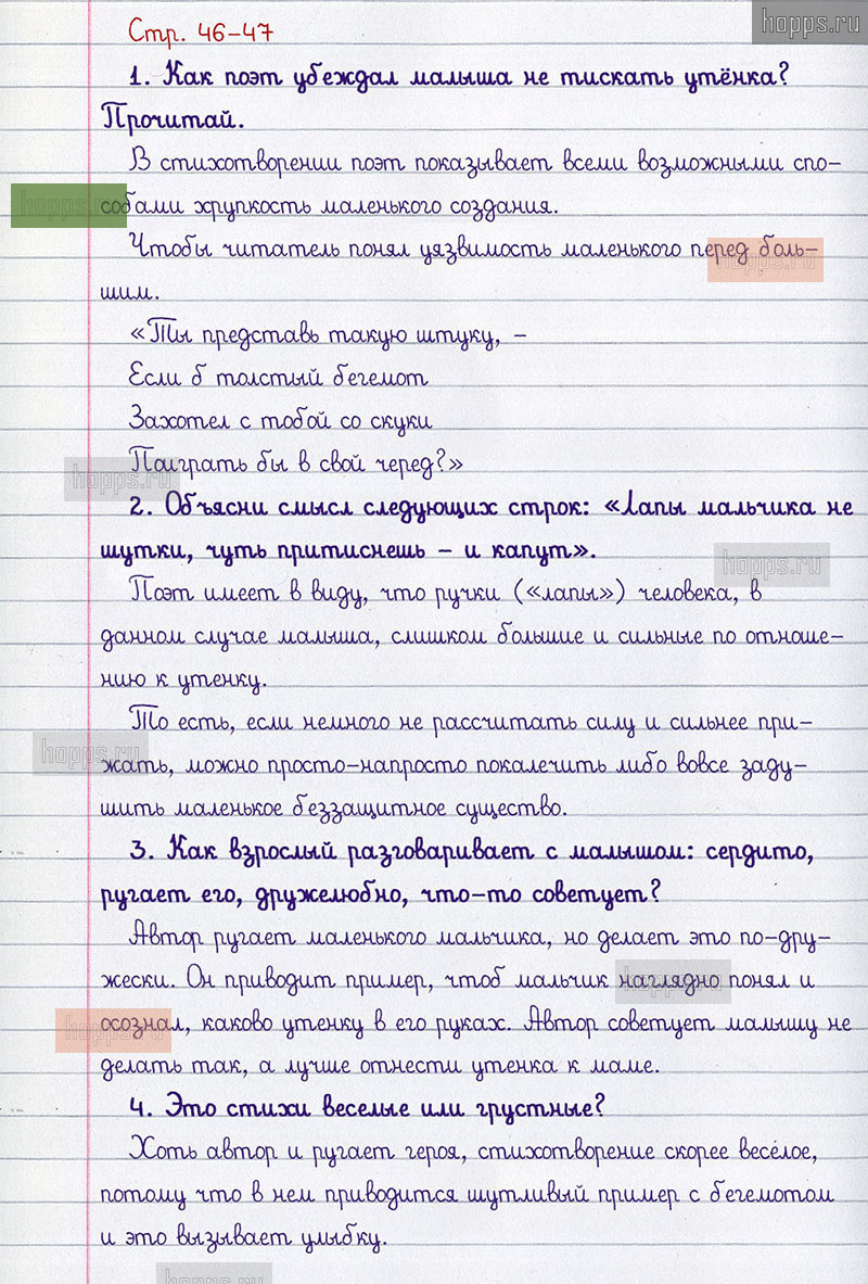 Подробные ответы к вопросам и заданиям на 46-47 странице 2 части учебника по литературному чтению авторов Л.Ф. Климанова, В.Г. Горецкий, М.В. Голованова для учащихся 3 класса.