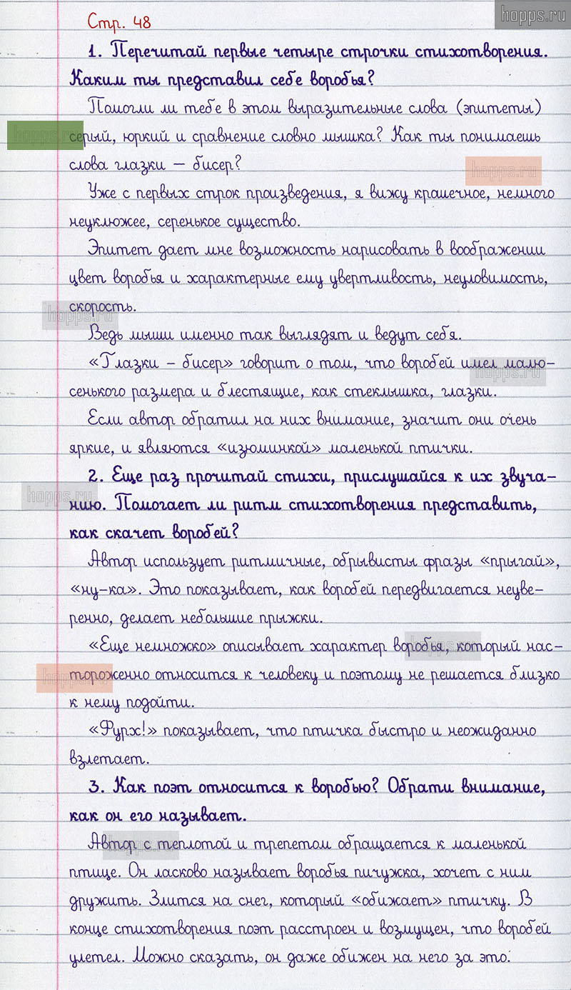 Подробные ответы к вопросам и заданиям на 48 странице 2 части учебника по литературному чтению авторов Л.Ф. Климанова, В.Г. Горецкий, М.В. Голованова для учащихся 3 класса.