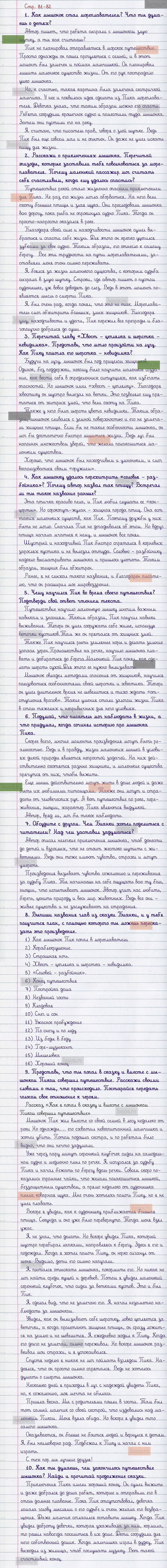 Подробные ответы к вопросам и заданиям на 81-82 странице 2 части учебника по литературному чтению авторов Л.Ф. Климанова, В.Г. Горецкий, М.В. Голованова для учащихся 3 класса.