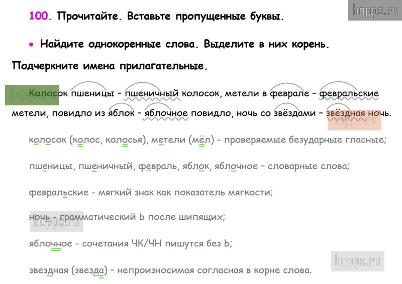 Готовые ответы к 100 упражнению 2 части рабочей тетради по русскому языку для учащихся 3 класса, автора В.П. Канакина, Школа России, 2019 г.