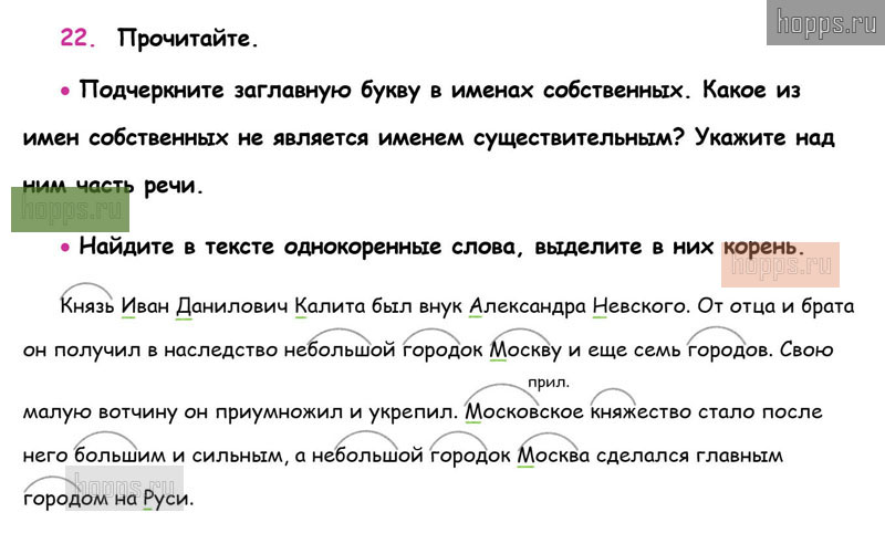 Готовые ответы к 22 упражнению 2 части рабочей тетради по русскому языку для учащихся 3 класса, автора В.П. Канакина, Школа России, 2019 г.
