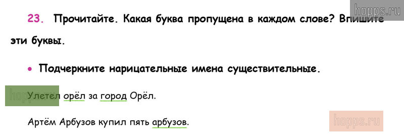 Готовые ответы к 23 упражнению 2 части рабочей тетради по русскому языку для учащихся 3 класса, автора В.П. Канакина, Школа России, 2019 г.