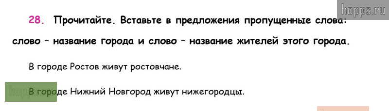 Готовые ответы к 28 упражнению 2 части рабочей тетради по русскому языку для учащихся 3 класса, автора В.П. Канакина, Школа России, 2019 г.