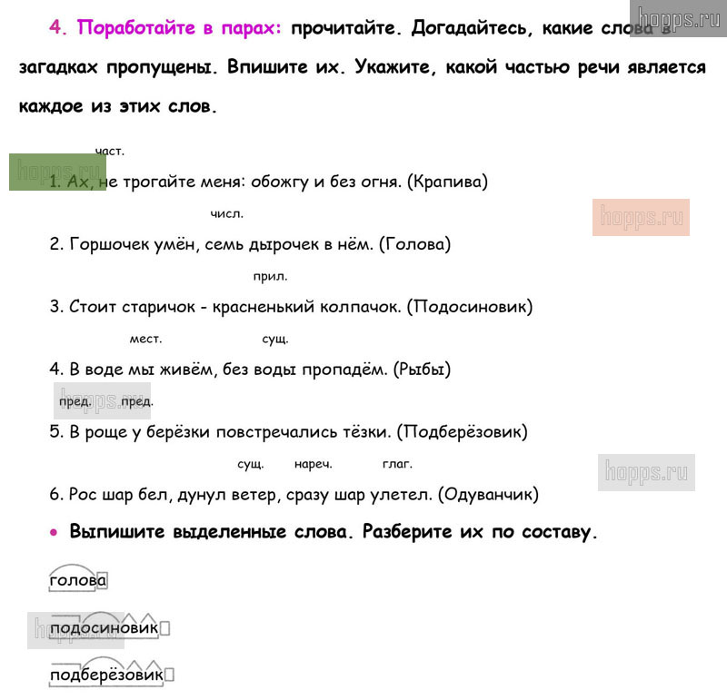 Готовые ответы к 4 упражнению 2 части рабочей тетради по русскому языку для учащихся 3 класса, автора В.П. Канакина, Школа России, 2019 г.