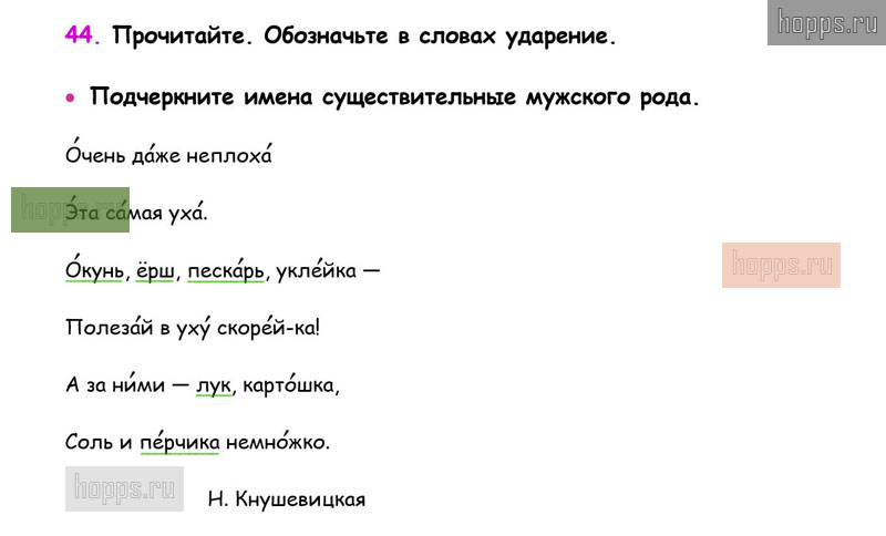Готовые ответы к 44 упражнению 2 части рабочей тетради по русскому языку для учащихся 3 класса, автора В.П. Канакина, Школа России, 2019 г.