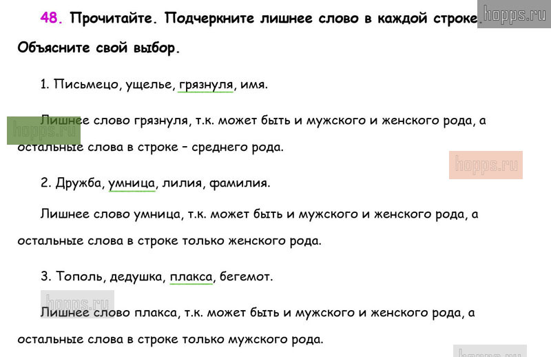 Готовые ответы к 48 упражнению 2 части рабочей тетради по русскому языку для учащихся 3 класса, автора В.П. Канакина, Школа России, 2019 г.