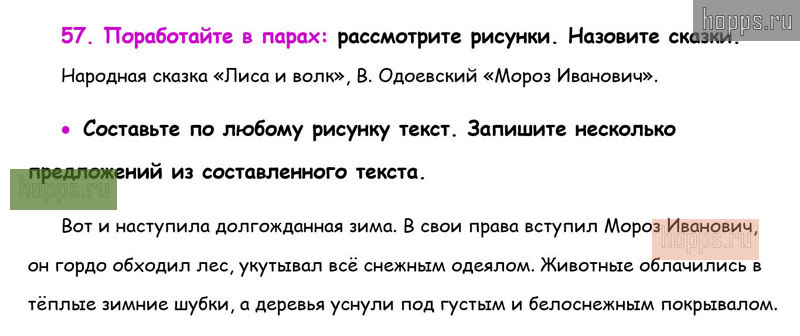 Готовые ответы к 57 упражнению 2 части рабочей тетради по русскому языку для учащихся 3 класса, автора В.П. Канакина, Школа России, 2019 г.