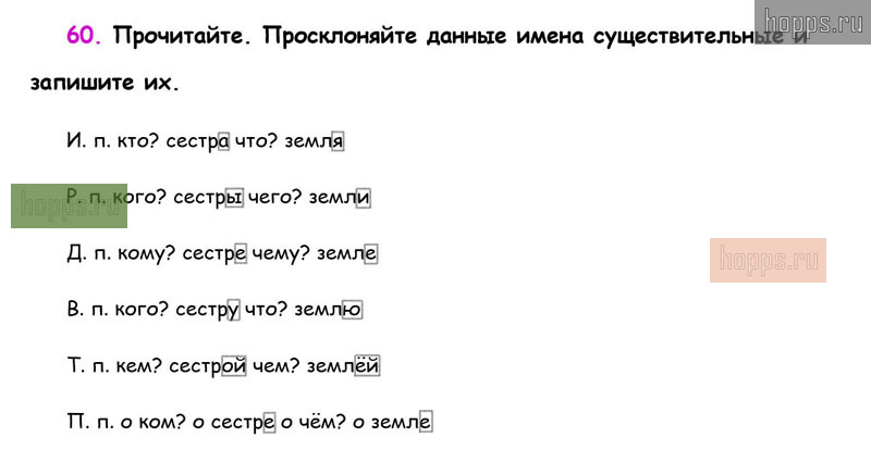 Готовые ответы к 60 упражнению 2 части рабочей тетради по русскому языку для учащихся 3 класса, автора В.П. Канакина, Школа России, 2019 г.