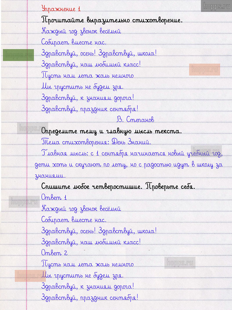 ГДЗ к 1 упражнению учебника по русскому языку В.П. Канакина, В.Г. Горецкий за 3 класс 1 часть | Источник: Hopps.ru