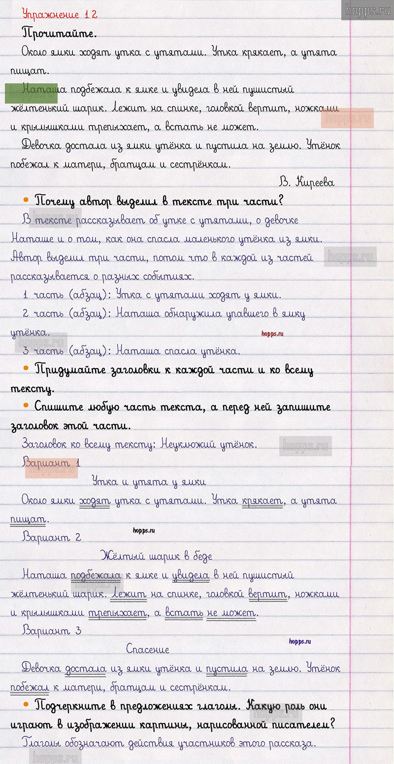 Подробные ответы к 12 упражнению 1 части учебника по русскому языку авторов В.П. Канакина, В.Г. Горецкий для учащихся 3 класса. Текст.