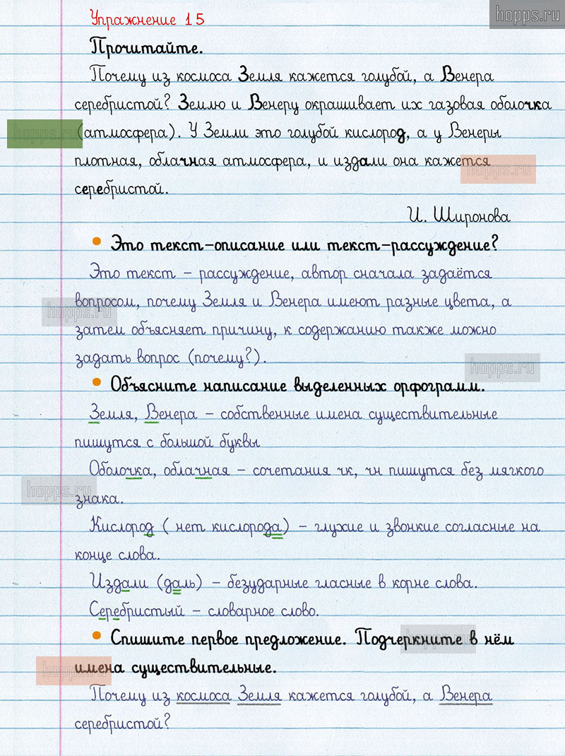 Подробные ответы к 15 упражнению 1 части учебника по русскому языку авторов В.П. Канакина, В.Г. Горецкий для учащихся 3 класса. Текст.