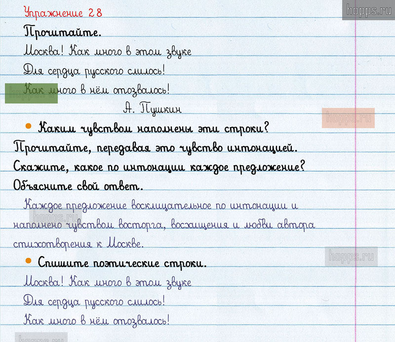 Подробные ответы к 28 упражнению 1 части учебника по русскому языку авторов В.П. Канакина, В.Г. Горецкий для учащихся 3 класса. Предложение.
