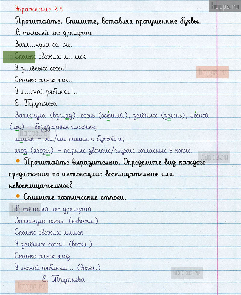 Подробные ответы к 29 упражнению 1 части учебника по русскому языку авторов В.П. Канакина, В.Г. Горецкий для учащихся 3 класса. Предложение.
