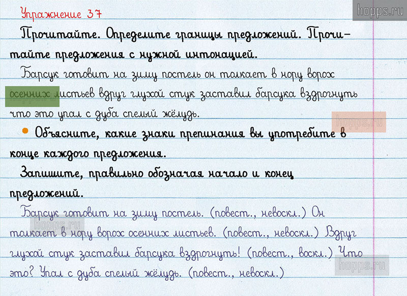 Подробные ответы к 37 упражнению 1 части учебника по русскому языку авторов В.П. Канакина, В.Г. Горецкий для учащихся 3 класса. Предложение.