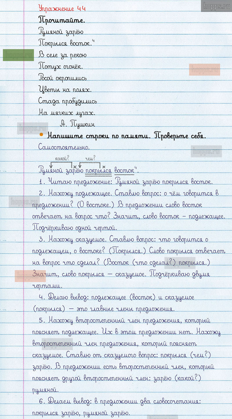 Подробные ответы к 44 упражнению 1 части учебника по русскому языку авторов В.П. Канакина, В.Г. Горецкий для учащихся 3 класса. Предложение.