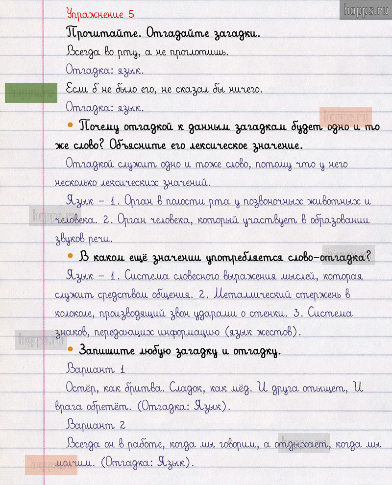 Подробные ответы к 5 упражнению 1 части учебника по русскому языку авторов В.П. Канакина, В.Г. Горецкий для учащихся 3 класса. Наша речь и наш язык.