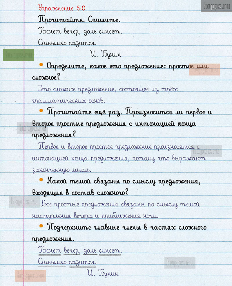 Подробные ответы к 50 упражнению 1 части учебника по русскому языку авторов В.П. Канакина, В.Г. Горецкий для учащихся 3 класса. Предложение.