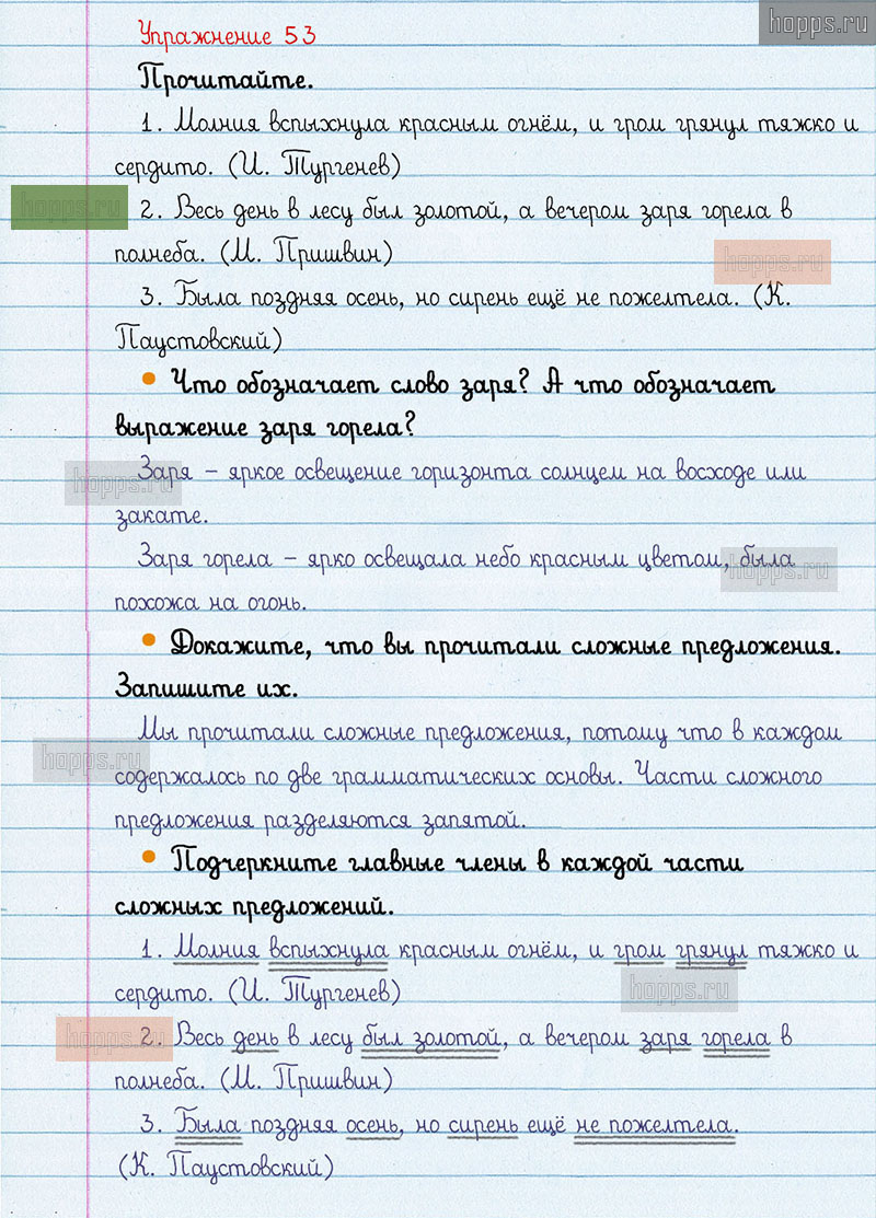Подробные ответы к 53 упражнению 1 части учебника по русскому языку авторов В.П. Канакина, В.Г. Горецкий для учащихся 3 класса. Предложение.