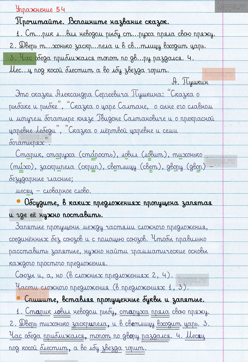 Подробные ответы к 54 упражнению 1 части учебника по русскому языку авторов В.П. Канакина, В.Г. Горецкий для учащихся 3 класса. Предложение.