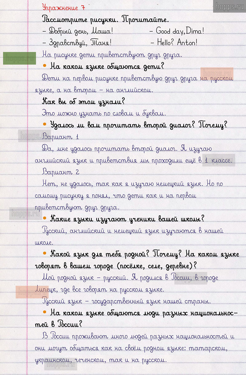 Подробные ответы к 7 упражнению 1 части учебника по русскому языку авторов В.П. Канакина, В.Г. Горецкий для учащихся 3 класса. Наша речь и наш язык.