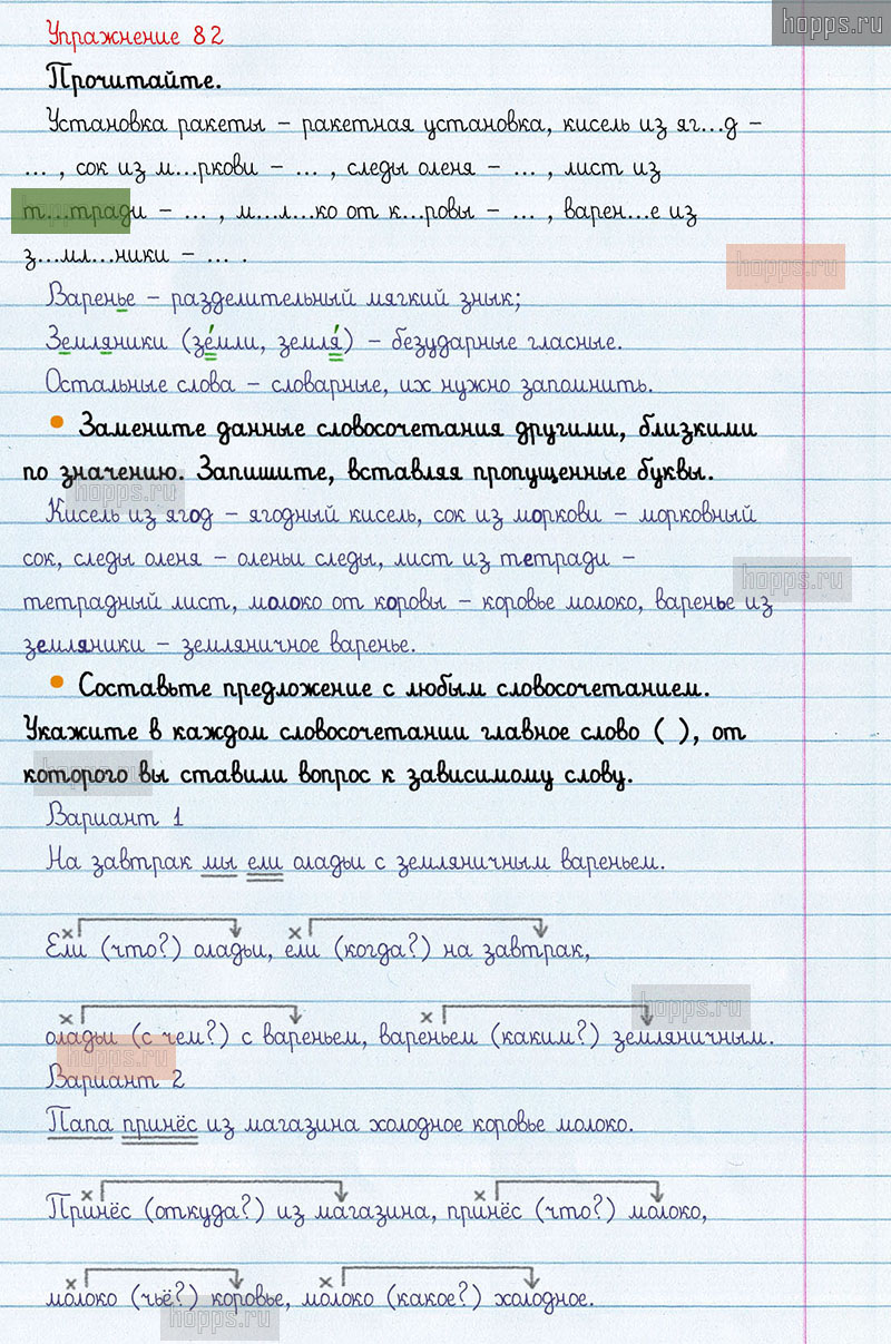 Подробные ответы к 82 упражнению 1 части учебника по русскому языку авторов В.П. Канакина, В.Г. Горецкий для учащихся 3 класса. Слово и словосочетание.