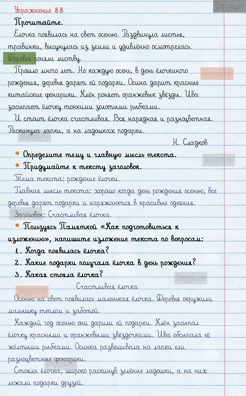 Подробные ответы к 88 упражнению 1 части учебника по русскому языку авторов В.П. Канакина, В.Г. Горецкий для учащихся 3 класса. Слово и словосочетание.