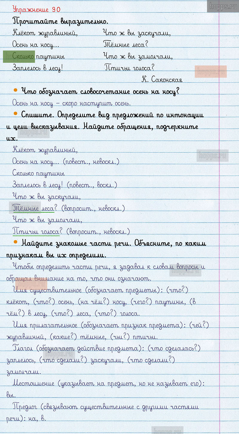 Подробные ответы к 90 упражнению 1 части учебника по русскому языку авторов В.П. Канакина, В.Г. Горецкий для учащихся 3 класса. Части речи.