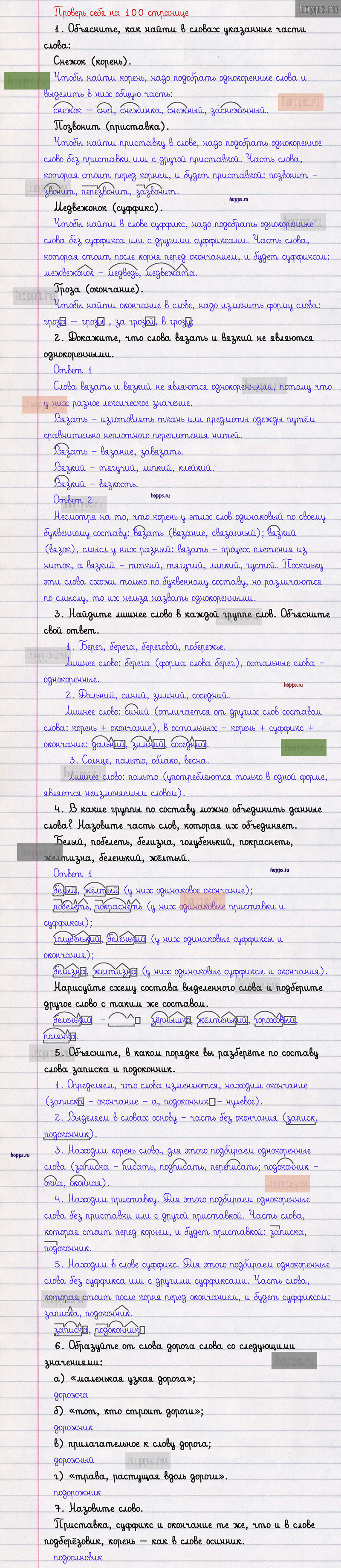 Подробные ответы к заданиям проверь себя на 100 странице 1 части учебника по русскому языку авторов В.П. Канакина, В.Г. Горецкий для учащихся 3 класса.