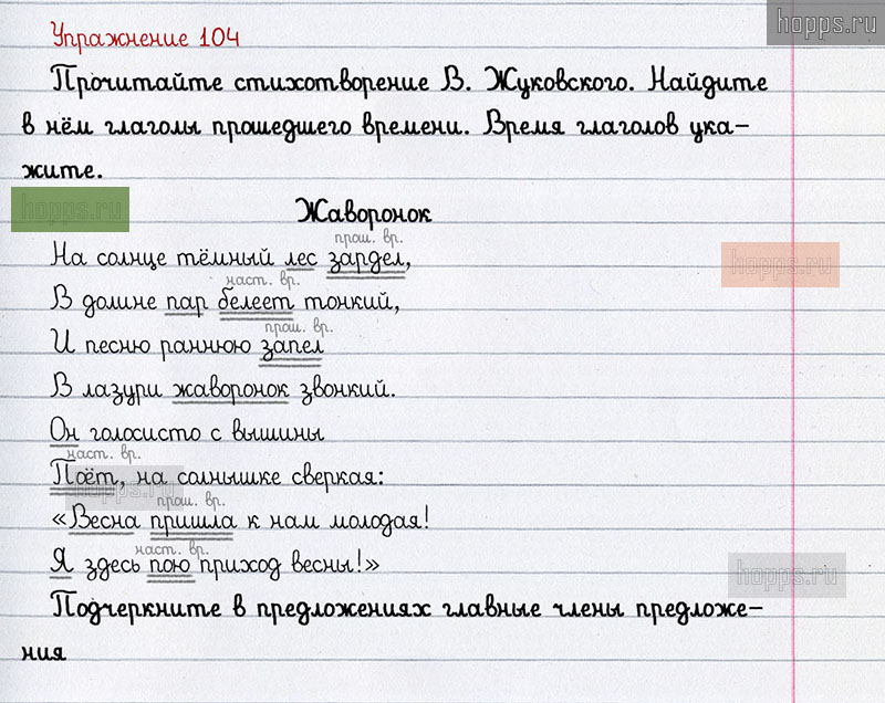Готовые ответы к 104 упражнению 2 части рабочей тетради по русскому языку для учащихся 3 класса, авторов Л.Ф. Климанова, Т.В. Бабушкина, Перспектива, 2021 г.