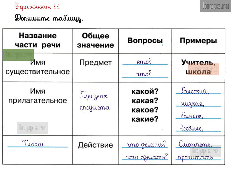 Готовые ответы к 11 упражнению 2 части рабочей тетради по русскому языку для учащихся 3 класса, авторов Л.Ф. Климанова, Т.В. Бабушкина, Перспектива, 2021 г.