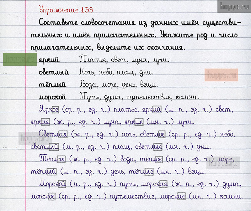 Готовые ответы к 139 упражнению 2 части рабочей тетради по русскому языку для учащихся 3 класса, авторов Л.Ф. Климанова, Т.В. Бабушкина, Перспектива, 2021 г.