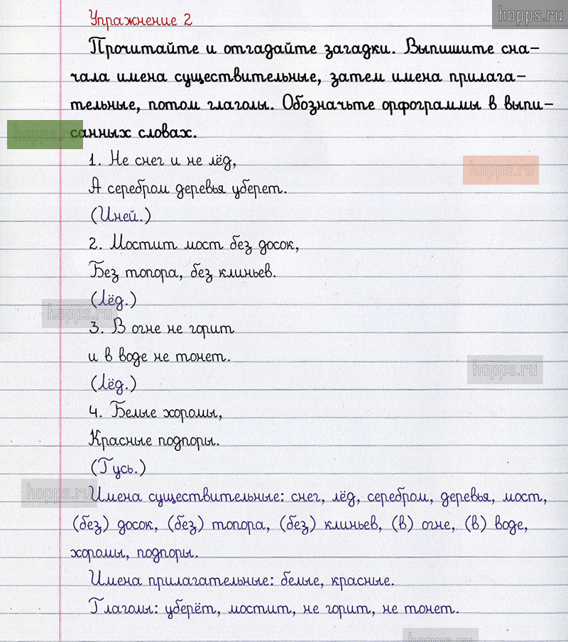 Готовые ответы к 2 упражнению 2 части рабочей тетради по русскому языку для учащихся 3 класса, авторов Л.Ф. Климанова, Т.В. Бабушкина, Перспектива, 2021 г.