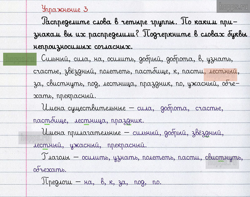 Готовые ответы к 3 упражнению 2 части рабочей тетради по русскому языку для учащихся 3 класса, авторов Л.Ф. Климанова, Т.В. Бабушкина, Перспектива, 2021 г.