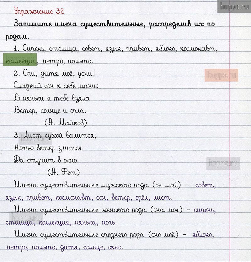 Готовые ответы к 32 упражнению 2 части рабочей тетради по русскому языку для учащихся 3 класса, авторов Л.Ф. Климанова, Т.В. Бабушкина, Перспектива, 2021 г.