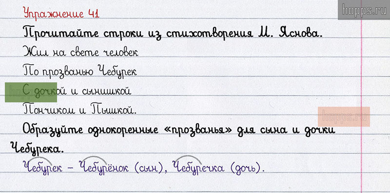 Готовые ответы к 41 упражнению 2 части рабочей тетради по русскому языку для учащихся 3 класса, авторов Л.Ф. Климанова, Т.В. Бабушкина, Перспектива, 2021 г.
