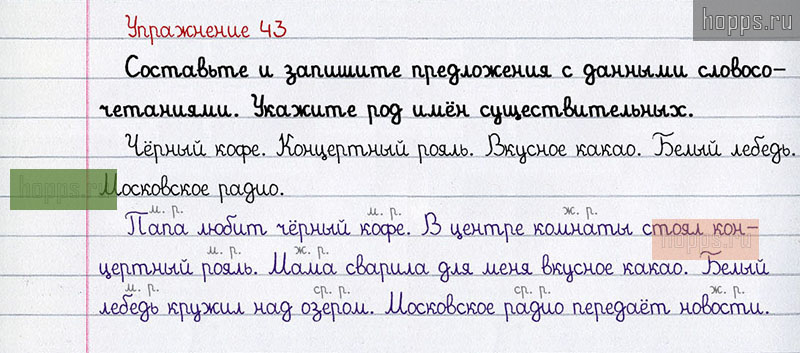 Готовые ответы к 43 упражнению 2 части рабочей тетради по русскому языку для учащихся 3 класса, авторов Л.Ф. Климанова, Т.В. Бабушкина, Перспектива, 2021 г.