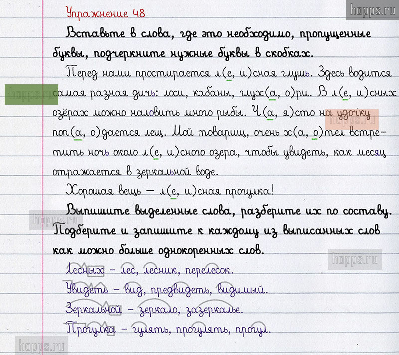 Готовые ответы к 48 упражнению 2 части рабочей тетради по русскому языку для учащихся 3 класса, авторов Л.Ф. Климанова, Т.В. Бабушкина, Перспектива, 2021 г.