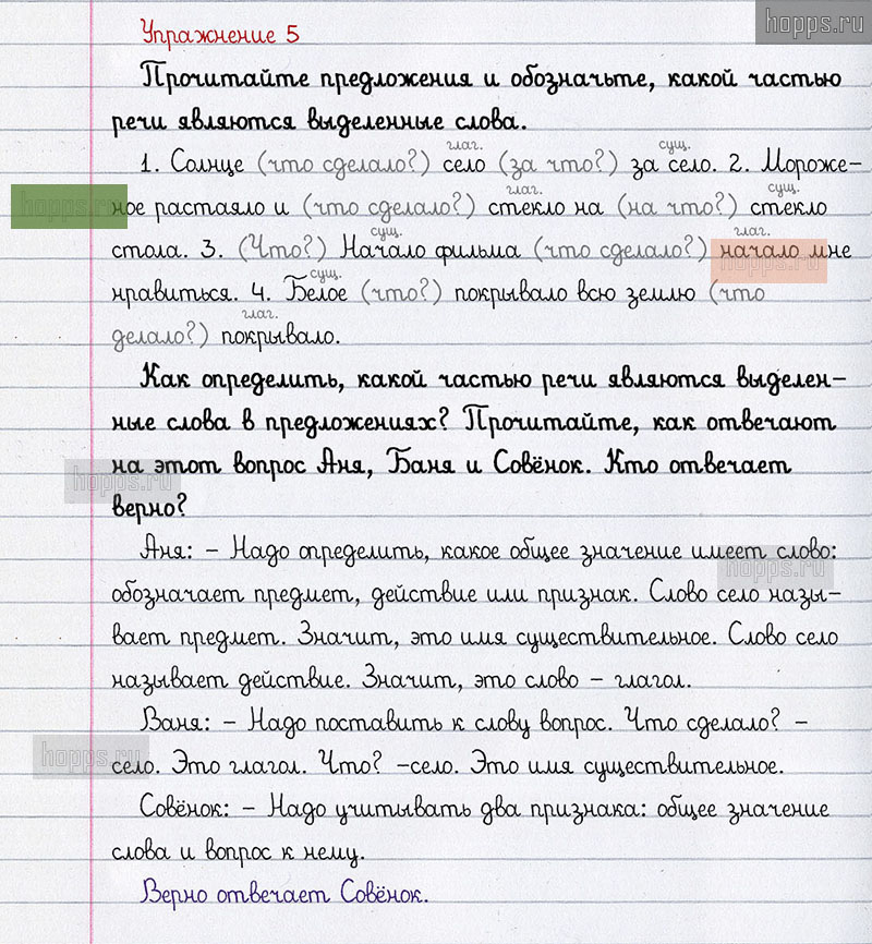 Готовые ответы к 5 упражнению 2 части рабочей тетради по русскому языку для учащихся 3 класса, авторов Л.Ф. Климанова, Т.В. Бабушкина, Перспектива, 2021 г.