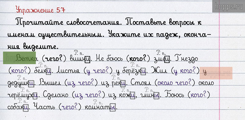 Готовые ответы к 57 упражнению 2 части рабочей тетради по русскому языку для учащихся 3 класса, авторов Л.Ф. Климанова, Т.В. Бабушкина, Перспектива, 2021 г.