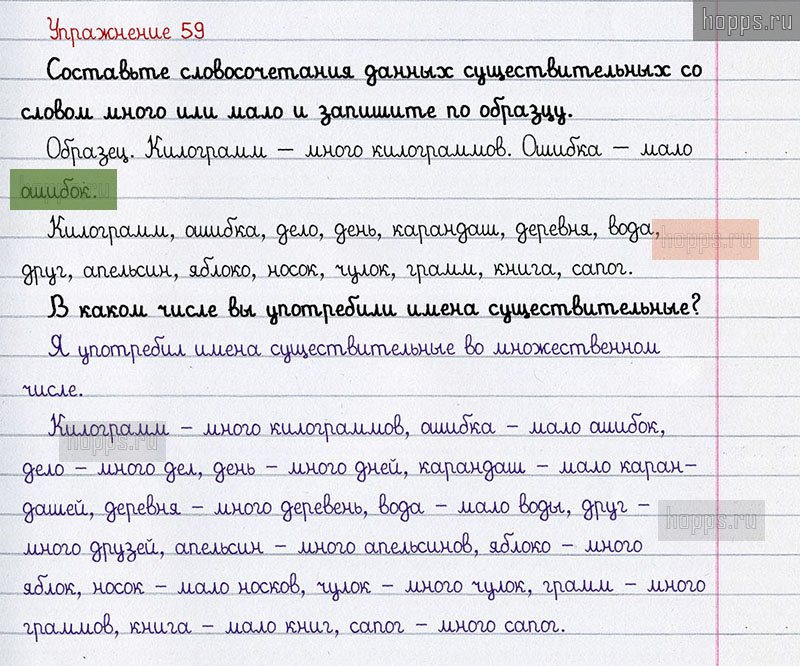 Готовые ответы к 59 упражнению 2 части рабочей тетради по русскому языку для учащихся 3 класса, авторов Л.Ф. Климанова, Т.В. Бабушкина, Перспектива, 2021 г.