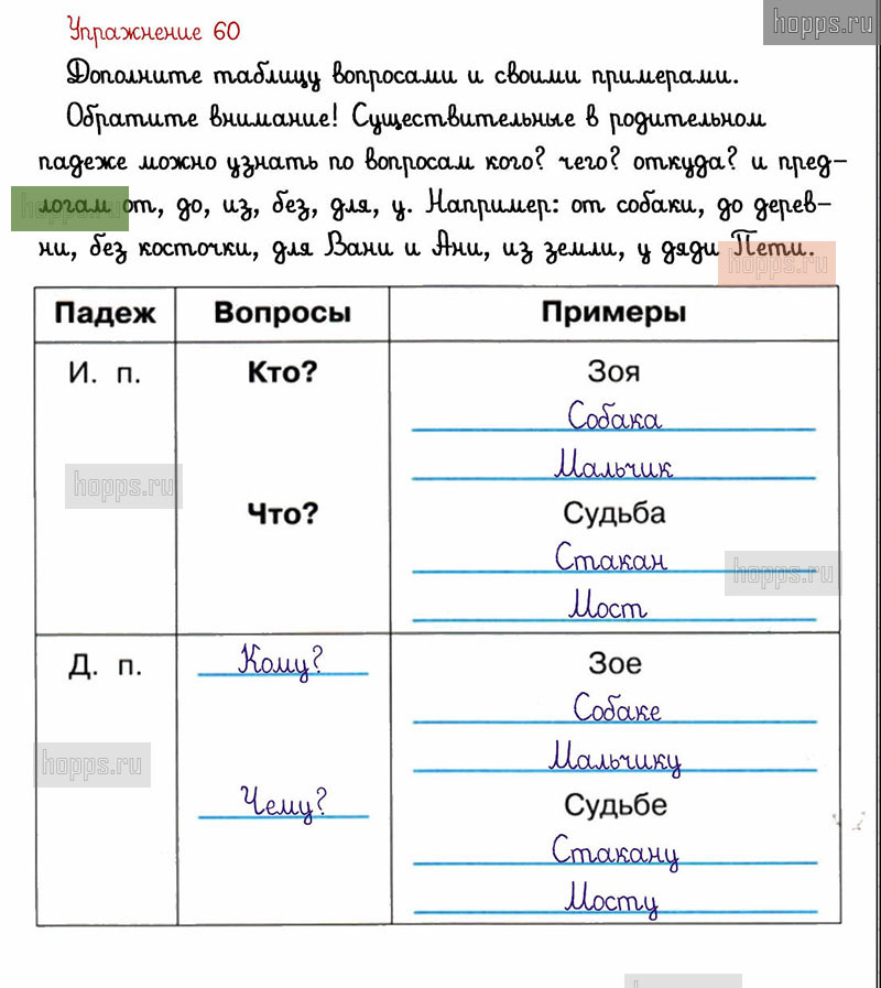 Готовые ответы к 60 упражнению 2 части рабочей тетради по русскому языку для учащихся 3 класса, авторов Л.Ф. Климанова, Т.В. Бабушкина, Перспектива, 2021 г.
