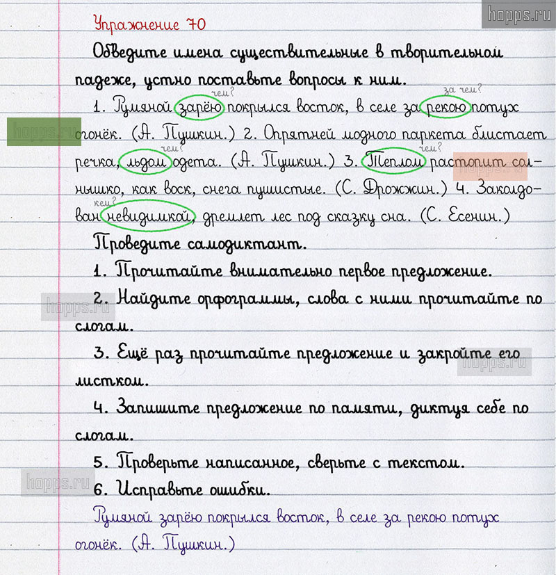Готовые ответы к 70 упражнению 2 части рабочей тетради по русскому языку для учащихся 3 класса, авторов Л.Ф. Климанова, Т.В. Бабушкина, Перспектива, 2021 г.